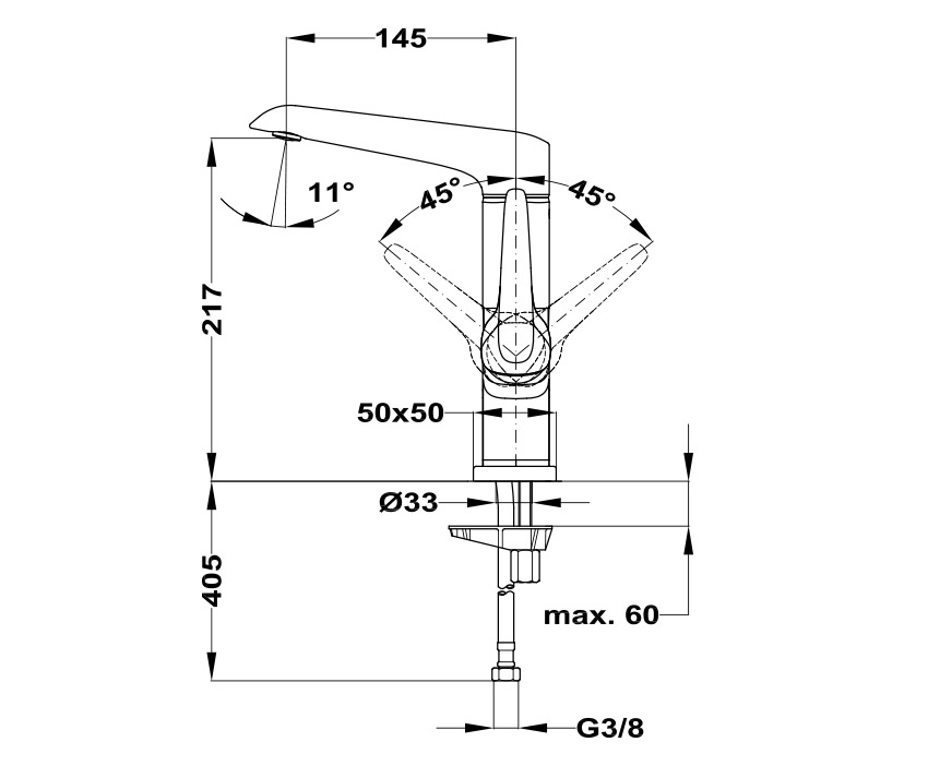 Flexibilis bekötőcsővel: 3/8”