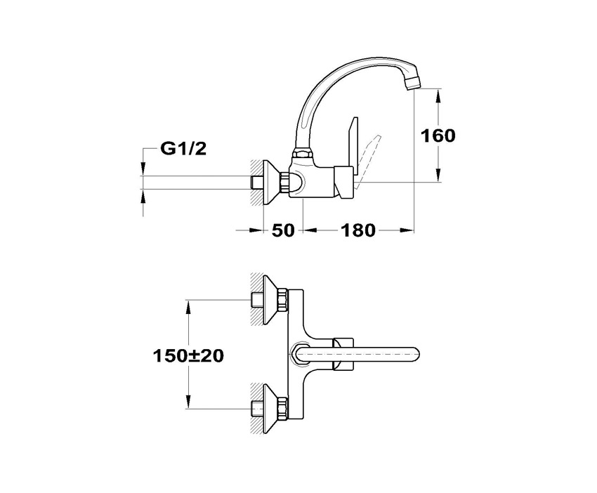 Mofém MAMBO-5 Mosogató Csaptelep Fali forgatható kifolyócsővel 152-0034-00 | 152003400