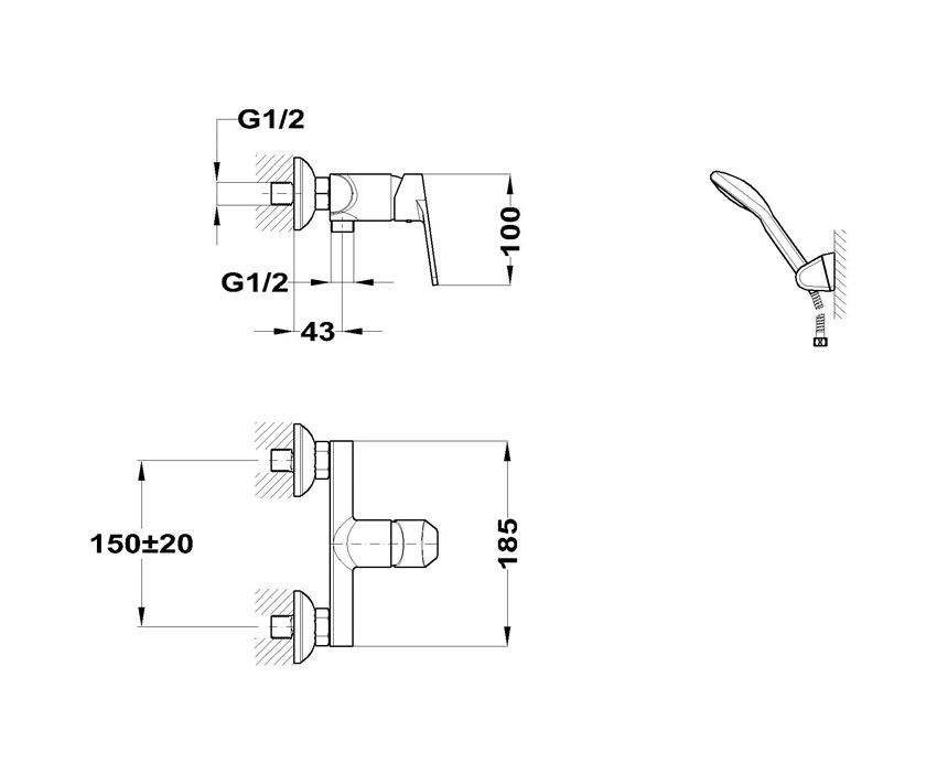 Mofém ZENIT zuhany csaptelep zuhanyszett nélkül153-1951-00