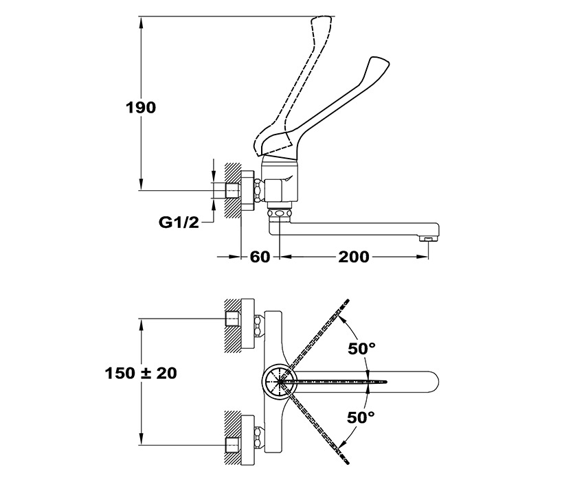 Mofém TREND PLUS fali orvosi mosogató csaptelep forgatható kifolyócsővel 159-1551-06 Mofém TREND PLUS fali orvosi mosogató csaptelep forgatható kifolyócsővel 159-1551-06