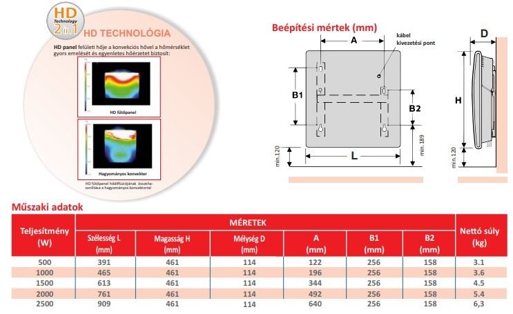 • Burkolt fűtőelem alumínium diffúzorral (biztonságos, csendes és tartós)