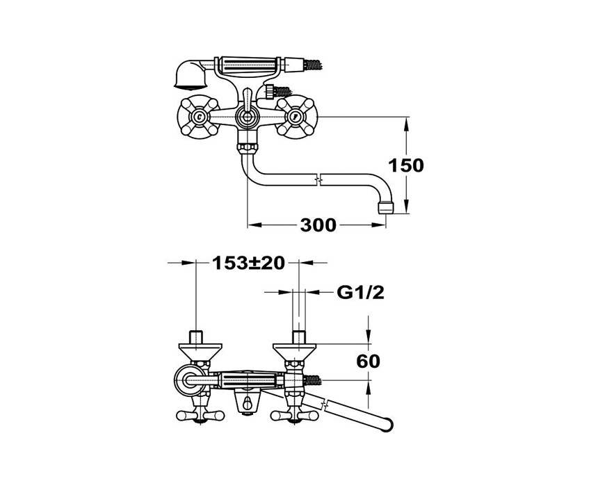 Mofém TREFF Kád-Mosdó töltő csaptelep (KMT) Antica zuhanyszettel 145-0021-3 | 145002130