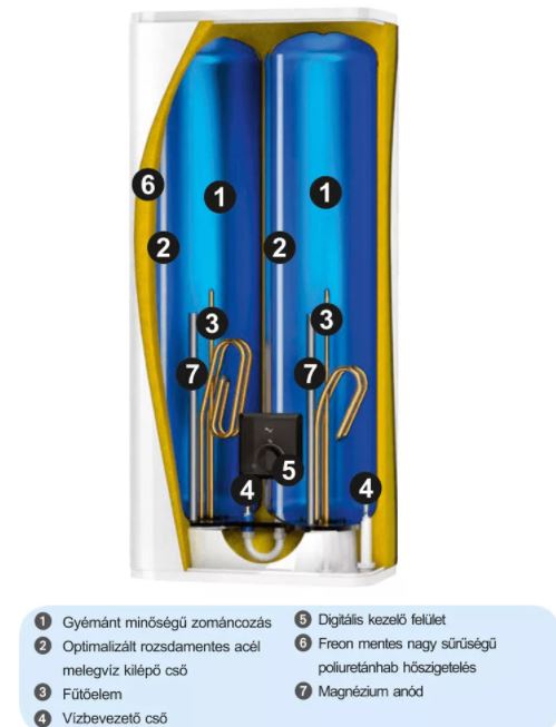 • Dupla tartályos kivitel, tartályonkénti dupla szigetelésű fűtőelem